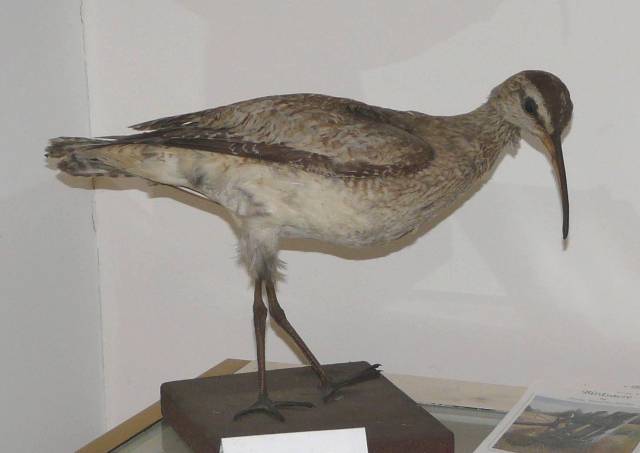 2. John–I would certainly think Eskimo curlew on seeing this mount. For the last couple of years I have volunteered at the Ohio State Museum bird range, where I handle a lot of specimens, something relatively few birders get to do.