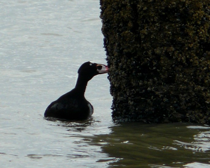 Surf Scoter April 23, 2010 by John Rakestraw, posted in species profile Surf Scoters are common winter residents along the coast. They eat mollusks, usually caught by diving. This individual was taking advantage of the low tide to find mollusks on an exposed piling. Like Loading... Related