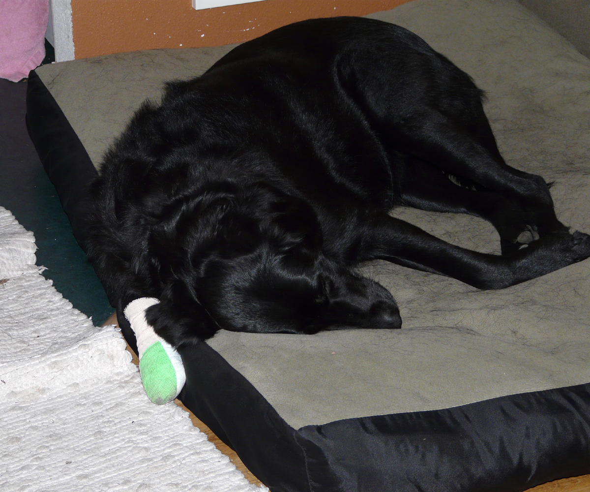When we got home we discovered that Nala had torn a pad on her paw. It is not too bad, but needs to be bandaged for a few days.