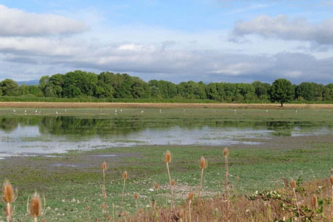 Racetrack Lake, located on Sauvie Island, sort of in between the end of Rentenaar Road and the east shore of Sturgeon Lake, has been quite good for shorebirds recently. Good shorebird habitat has been very hard to find in the Willamette Valley this summer, with conditions either too dry or too wet, so this patch of mud has been quite attractive to southbound migrants. Unfortunately, birds were pretty distant so they didn’t present great photo opportunities.