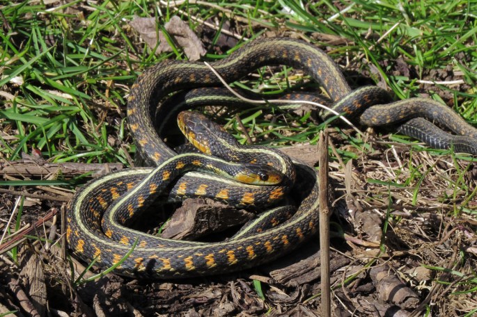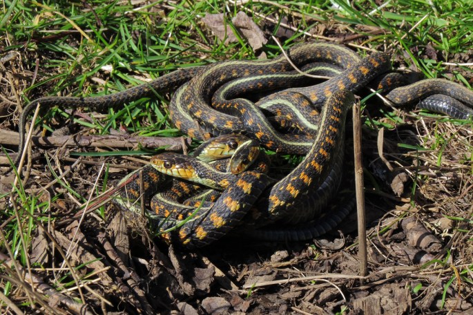 These two Red-spotted Garters were enjoying a little amour in the sunshine.