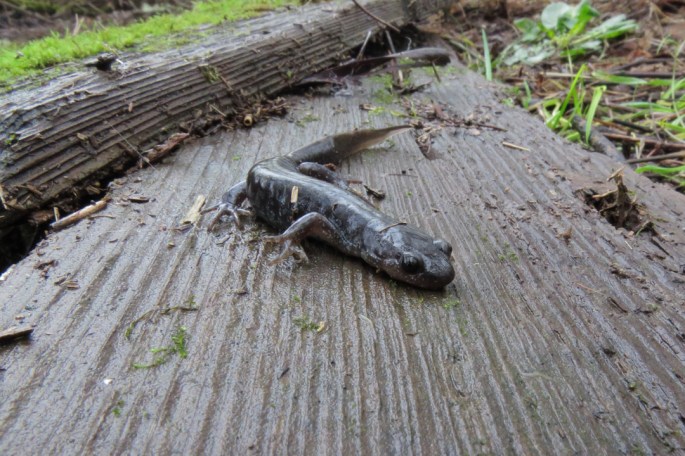 Long-toed Salamanders are one of the first amphibians to breed in the spring, so they are everywhere right now. These three were under a single board. Lifting a small piece of plywood revealed about a dozen of these critters.