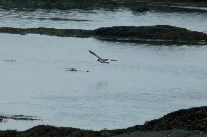 The Elkhart sewage ponds are the only permanent bodies of water for many miles around, so they attract good numbers of migrant shorebirds and waterfowl. These American Avocets were swimming in the middle of one of the pools.