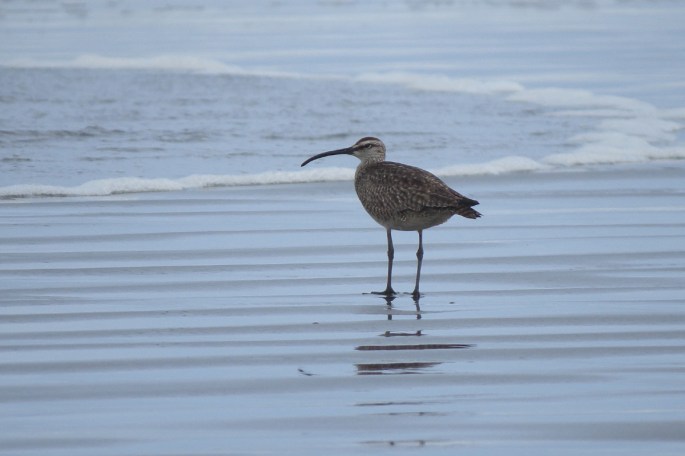 This spring has seen pretty calm weather. While the sunny days may make for pleasant birding, they do not necessarily lead to great birding. It usually takes some good storms to cause a lot of shorebirds to put down on the Oregon coast. But even in leaner years like this one, we are lucky to have good numbers of Whimbrels working the beaches.