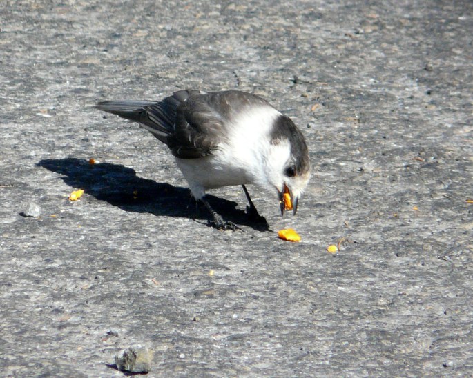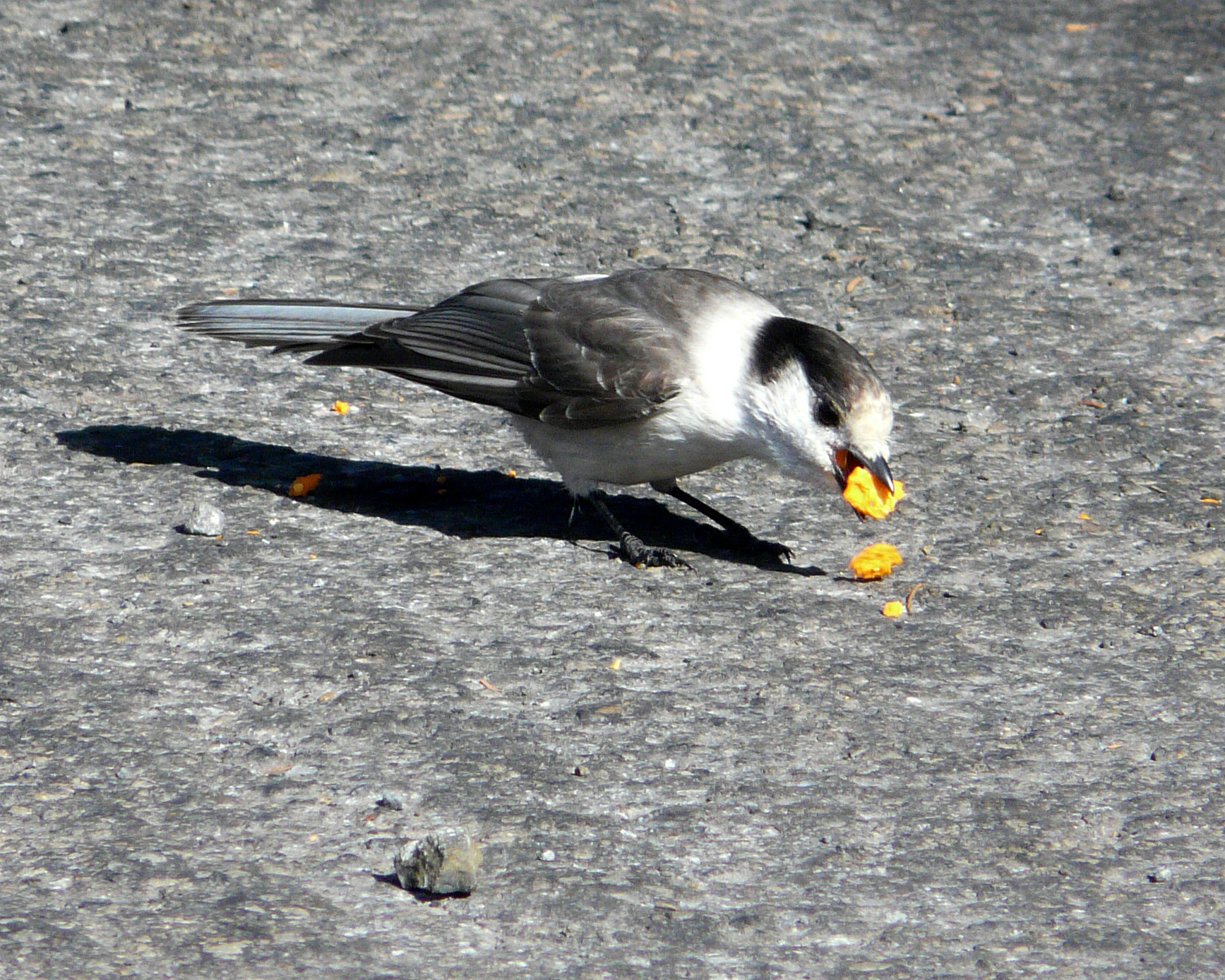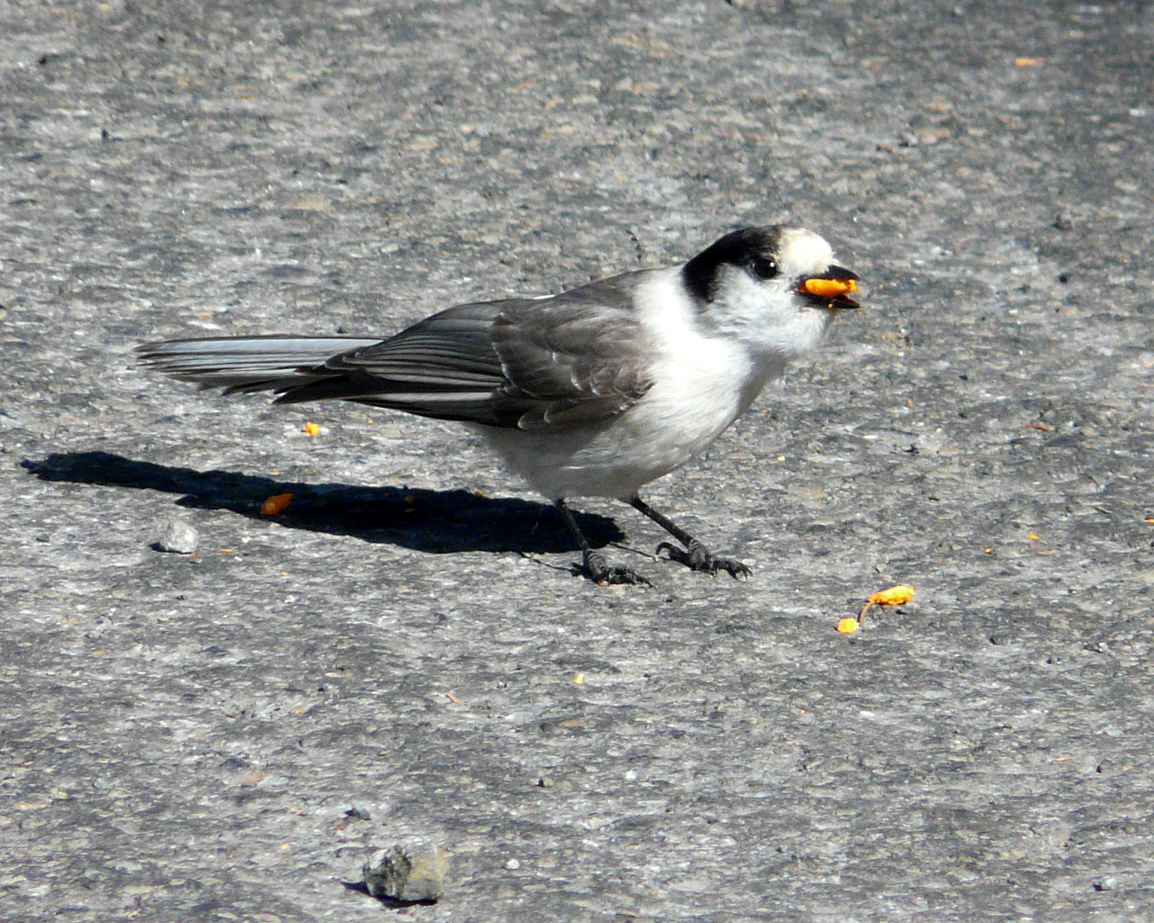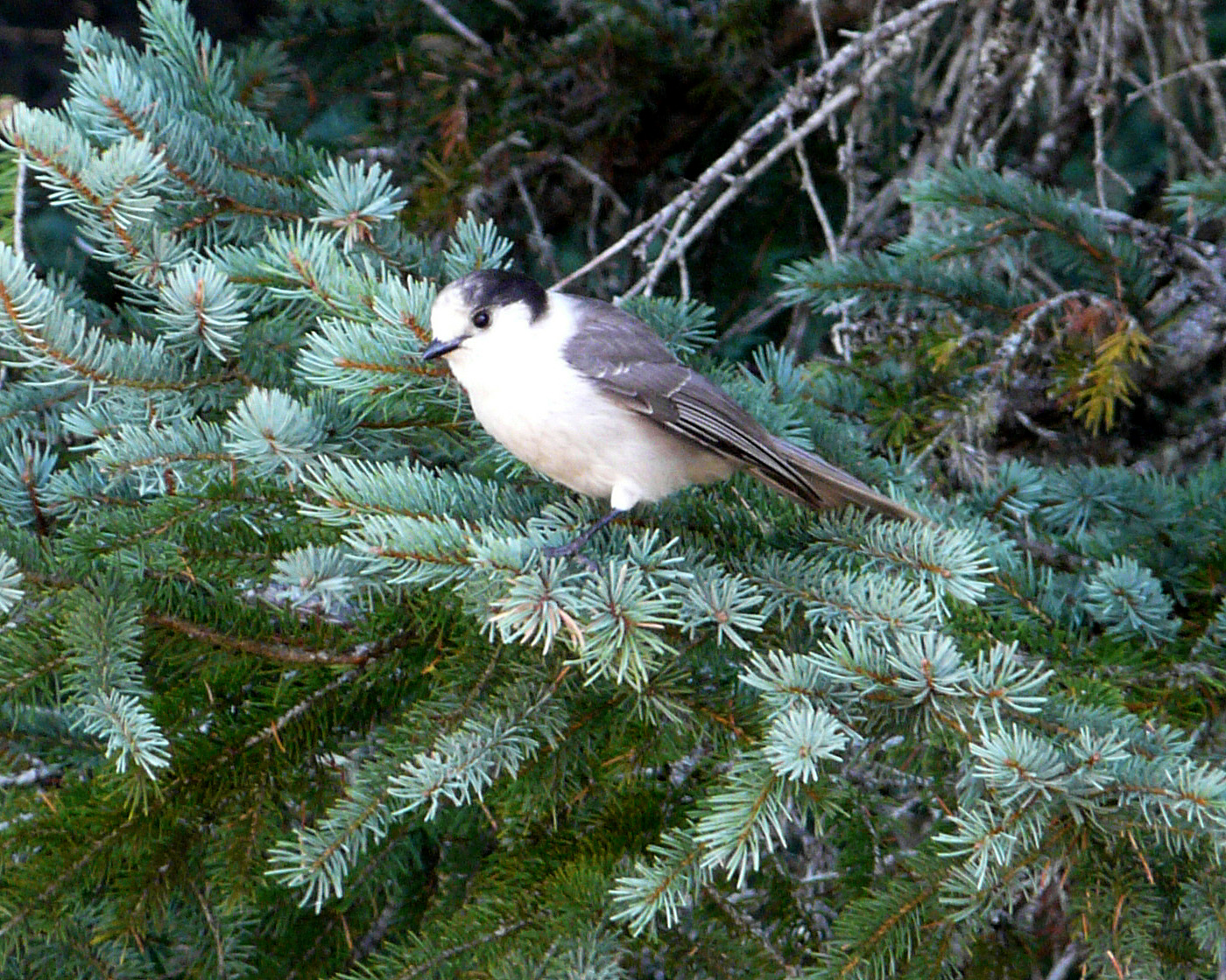 While exploring areas around Mt. Hood, my Portland Audubon class encountered a flock of Gray Jays at the Little Crater Lake Campground (Birding Oregon p. 75). When I find this species in the woods, they seem rather shy to me. But when the birds have been enjoying the easy pickings at a campground, one can quickly see how they got the nickname, Camp Robber. Jays were landing on fingers, binoculars, and hats in hopes of getting a handout. Their efforts were rewarded with nuts and crackers, a small price to pay for such an enjoyable close encounter with a beautiful bird.
