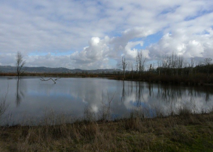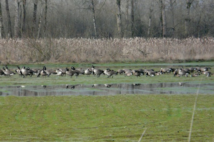 Pintail Marsh hosted this small flock of Tundra Swans and Dusky Canada Geese. Protecting winter habitat for the rare Duskies was the main reason for establishing the Willamette Valley National Wildlife Refuge Complex.