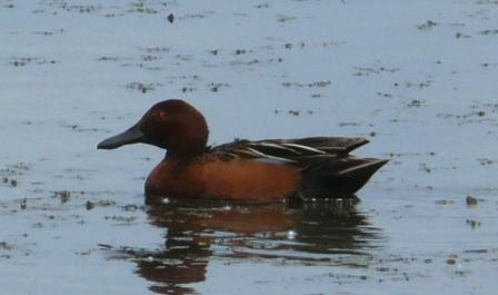 These Cinnamon Teal were plowing through a thick mat of algae. Note the very large bills on these ducks, which help identify them in their summer plumage.
