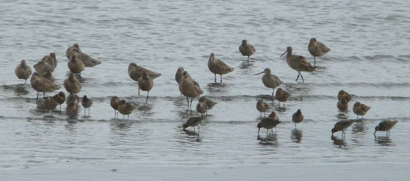 Although the shorebird migration is winding down, there were still some birds on the bay side of the spit. Black-bellied Plovers were the most obvious and vocal, joined by Western Sandpipers, Short-billed Dowitchers, a Semipalmated Plover, and the first Dunlin of the season.
