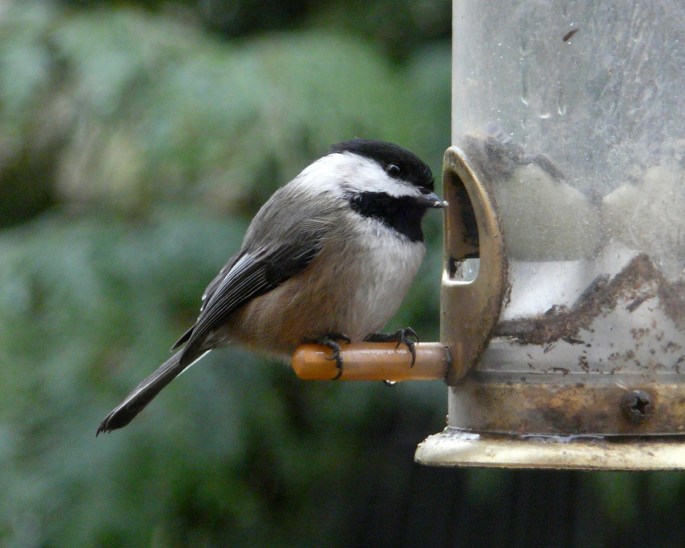 I had three species of chickadees attending my feeder recently. The Black-capped Chickadees are year-round residents and visit every day.