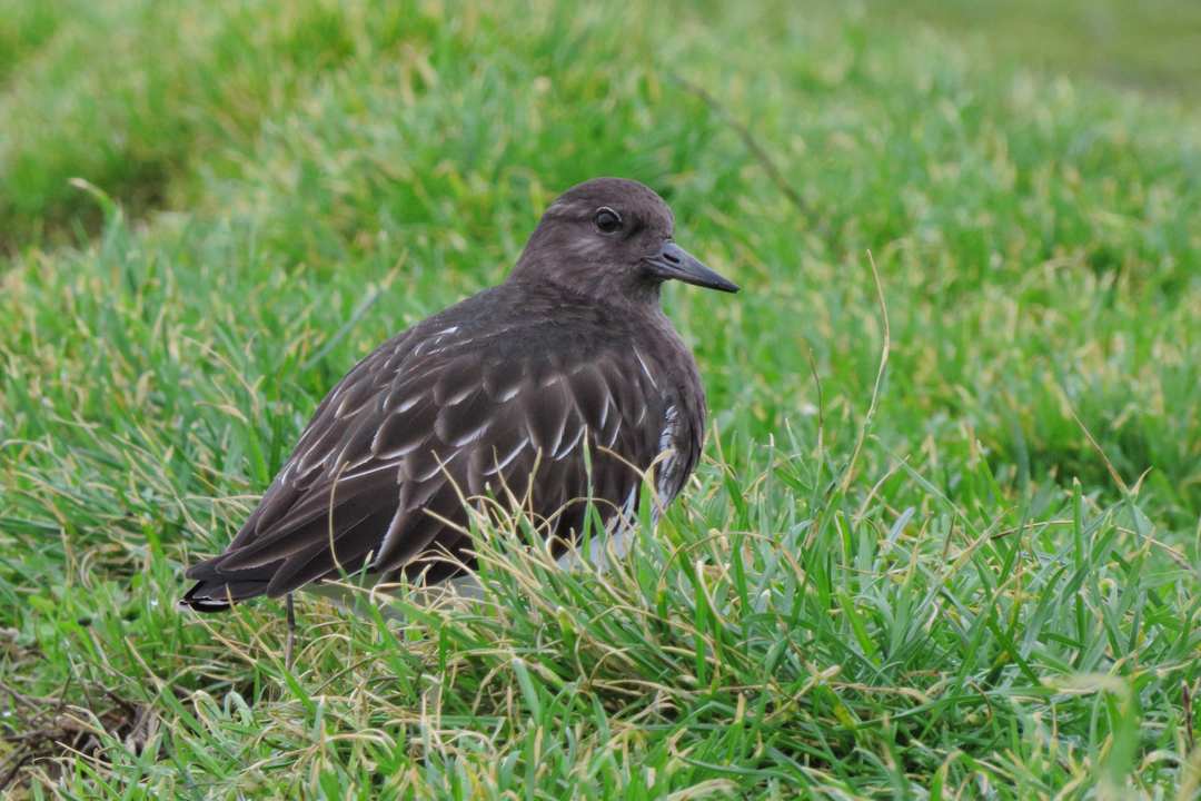 This Black Turnstone was taking shelter from the high tides on the little lawn at the Seaside Cove.