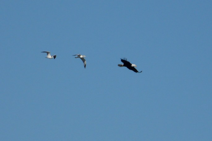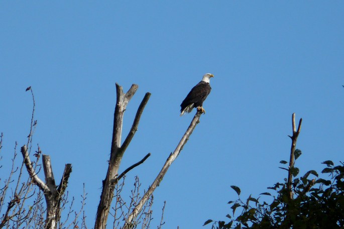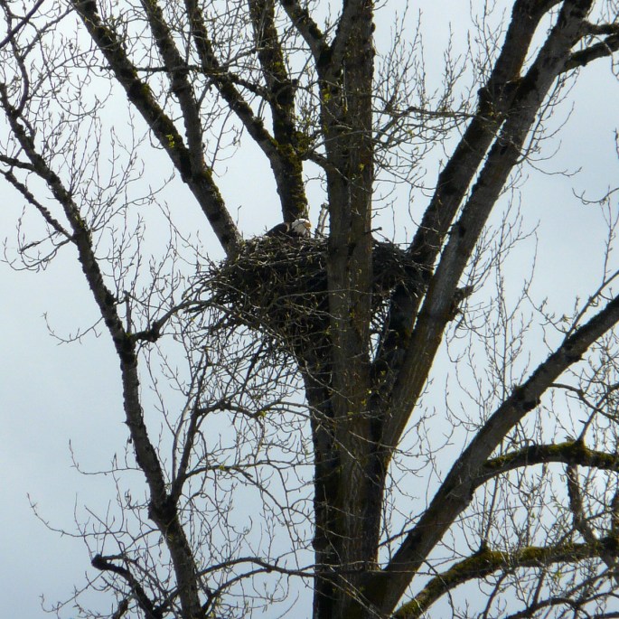 The resident Bald Eagles were sitting around looking majestic. I watched one carrying a stick to add to their nest.