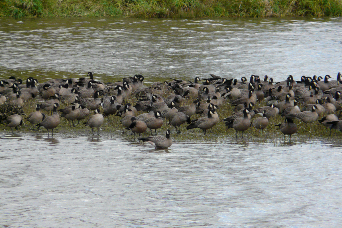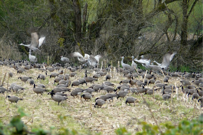 Here are just a few of the thousand or so Cackling Geese that were using the site that morning. You can also see a few Dusky Canada Geese and Northern Pintails in the photo.