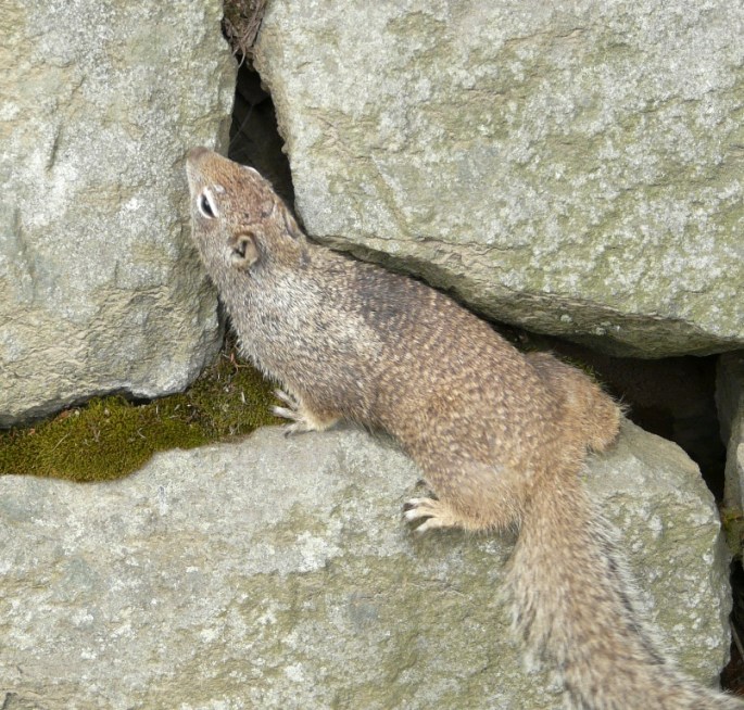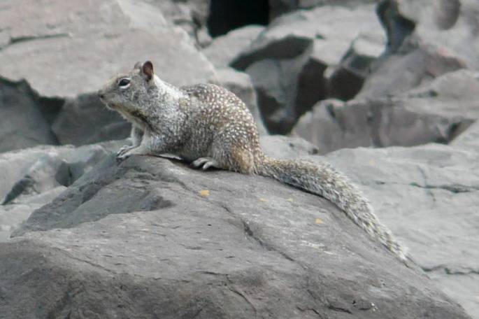 This individual was on Barview Jetty on the north shore of Tillamook Bay (Birding Oregon p.125). Rocky coastlines are an unusual habitat for ground squirrels. Note the white dapples on the back.