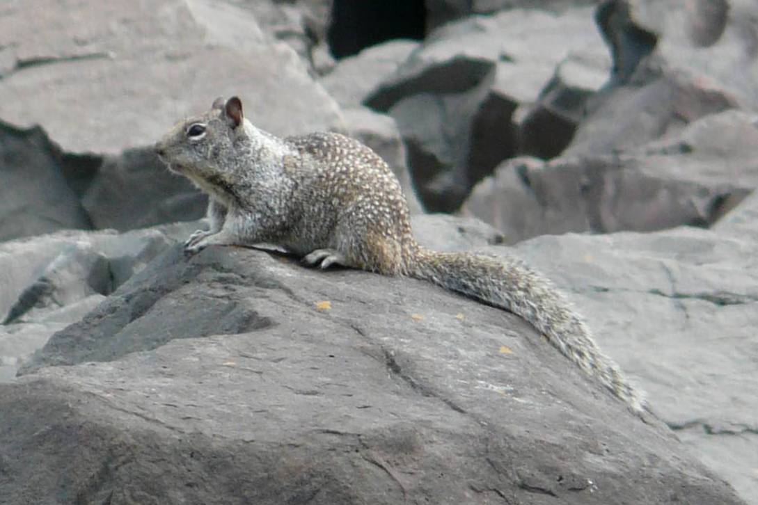 Ranging throughout the western third of Oregon, California Ground Squirrels (Spermophilus beecheyi) are much larger and bushier-tailed than other ground squirrels. They are found in open grasslands (including large lawns) and on rocky outcrops. Unlike other ground squirrels, they will also climb trees to obtain food. A colloquial name for this species is Gray Digger.