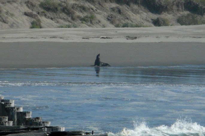Later we noticed the the sea lion had rolled over and extended a flipper. Apparently he was just hanging out on the mudflat catching some sun.
