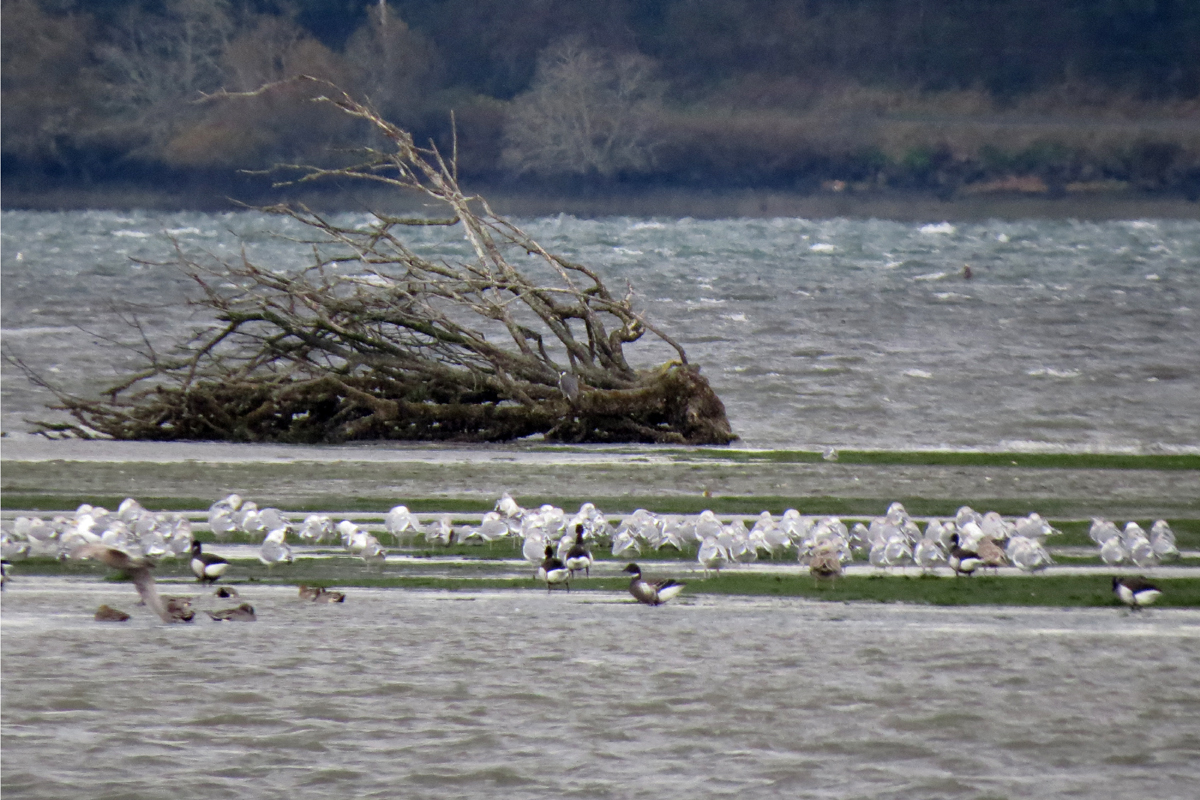 When the tide is out, the bay provides extensive mudflats. With this much exposed mud, the birds can be quite distant, so timing your visit when the tide is coming in can produce some nice viewing.