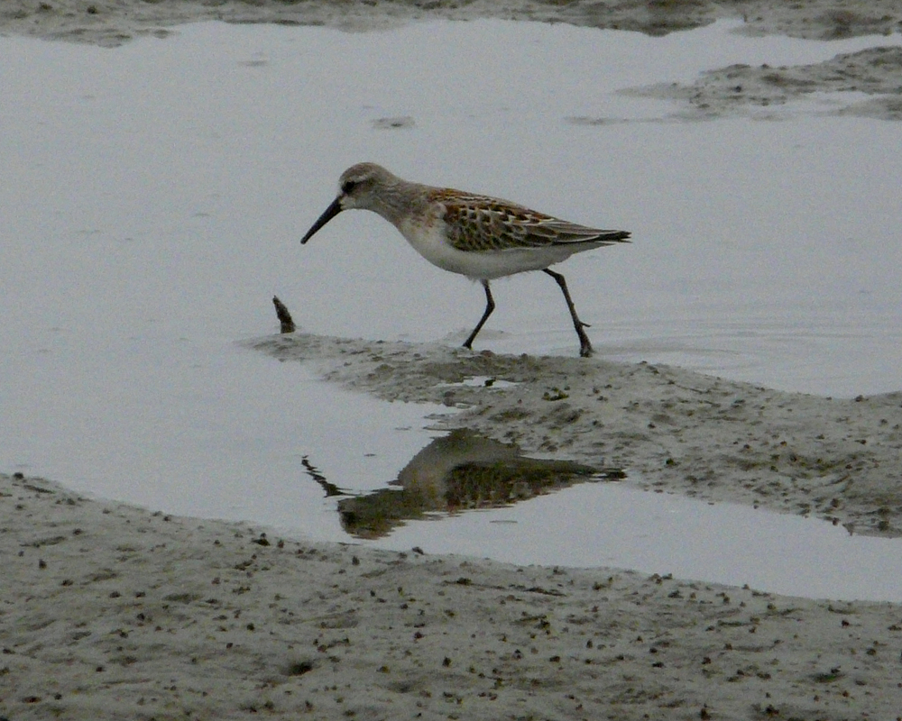 I went to Fort Stevens to look for shorebirds this week. The main push of spring migrants hadn’t arrived yet, but numbers were definitely on the increase. I was pleased that I timed the tide correctly at Parking Lot D. This little bay fills quickly when the tide comes in, so it was nice to have extensive mudflats on this visit.