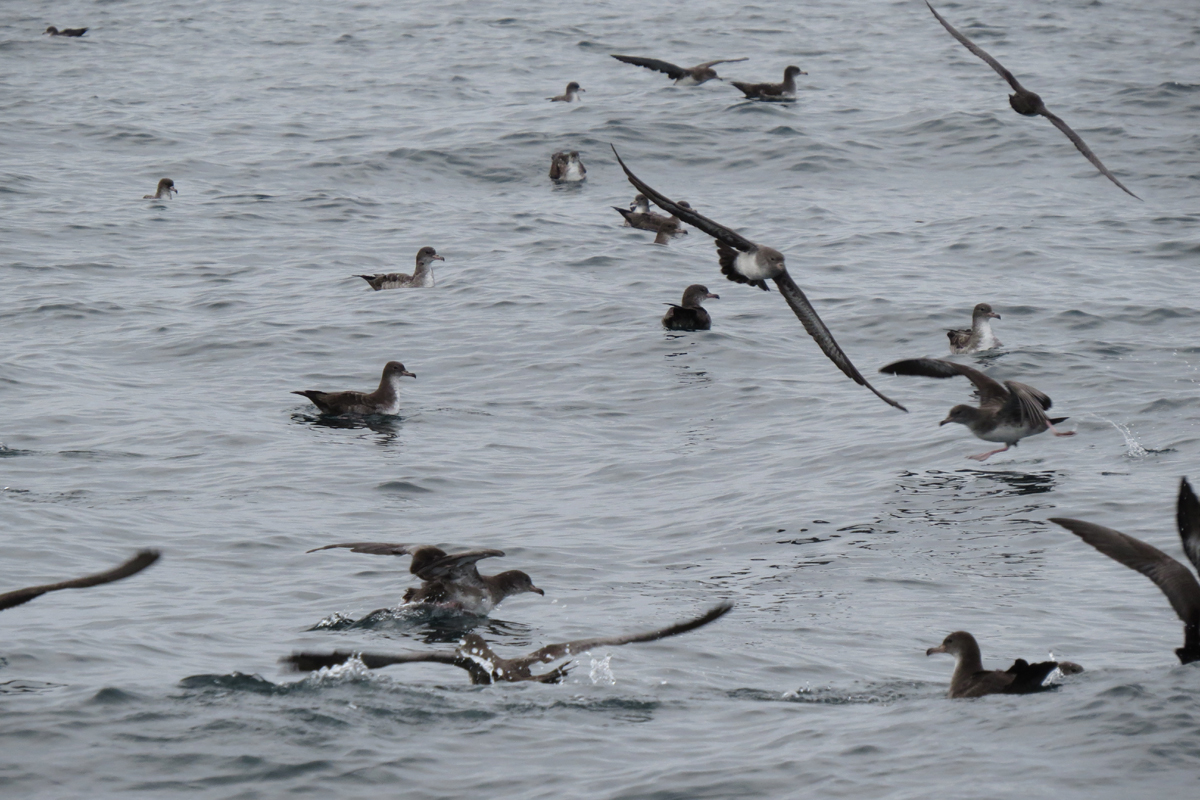 The most common species of the day was Pink-footed Shearwater. The largest concentration of birds was gathered behind a fish processing ship. While I am opposed to the strip-mining of our oceans, these ships always attract a lot of birds.