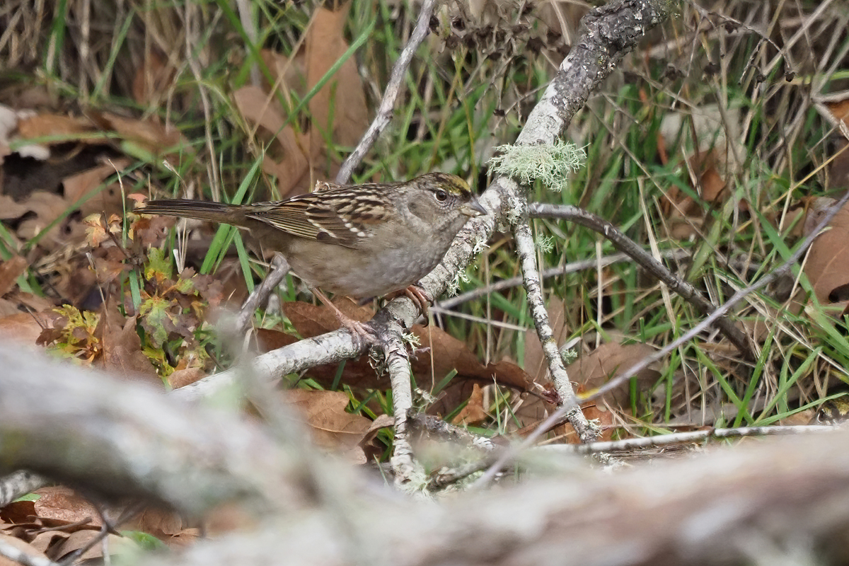 golden-crowned sparrowGolden-crowned Sparrows are the most common sparrows along this stretch of road.