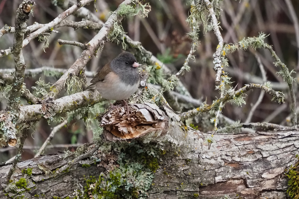 I don’t normally think of Dark-eyed Juncos as having a camouflage pattern, but this individual was doing a great job of blending in with his environment.