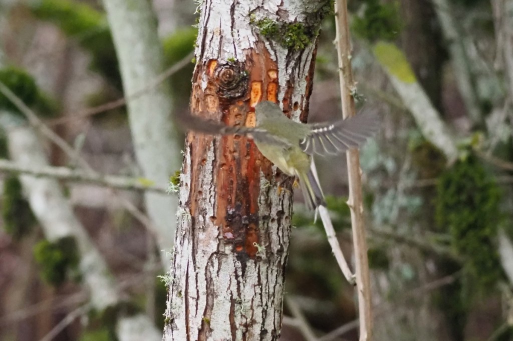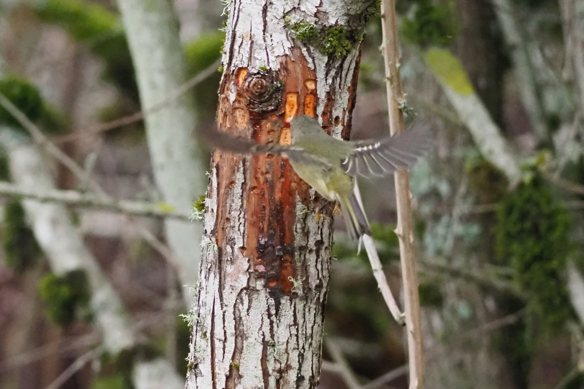The highlight of this trip was a fresh sapsucker well that was attracting both Anna’s Hummingbirds and Ruby-crowned Kinglet. Sapsucker wells are an important source of nectar and insects for birds in the colder months.