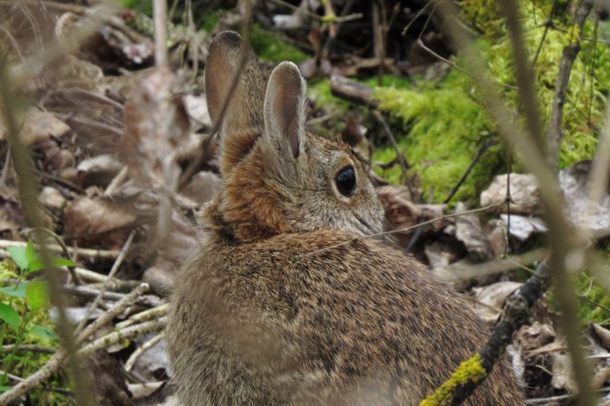 I am having trouble distinguishing Brush Rabbits from the introduced Eastern Cottontail. I have recently learned that the two species will hybridize, making identification even harder. The rusty nape on this individual makes me think it is an Eastern Cottontail.