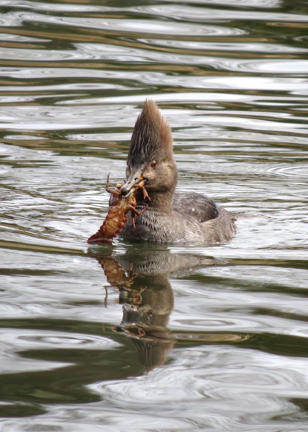 The highlight of this trip was a pair of Hooded Mergansers squabbling over a large crayfish. The female finally won possession and, with a great deal of effort, swallowed the crustacean.