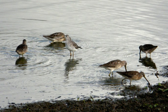 Shorebird numbers and diversity have dwindled. Here are a few Long-billed Dowitchers.