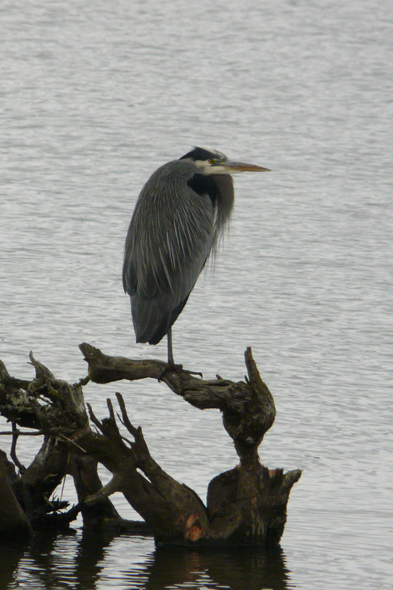Great Blue Herons are nesting in the trees to the east of the wetlands. This individual was resting on a snag in Cattail Marsh.
