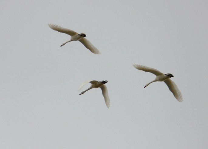 Tundra Swans were flying in to roost. They tend to stay in the more distant parts of Mitigation Marsh.