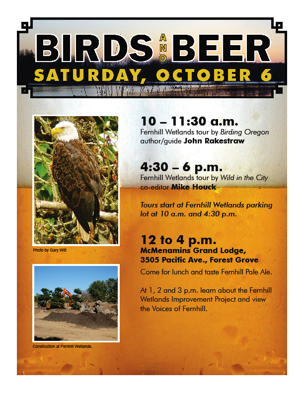 The annual Fernhill Wetlands Birds and Brew Festival will be held on October 12. I will be leading the 8:00 tour for that. Here is a link for more info.