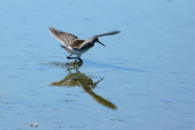 Greater Yellowlegs, sinking into the soft mud