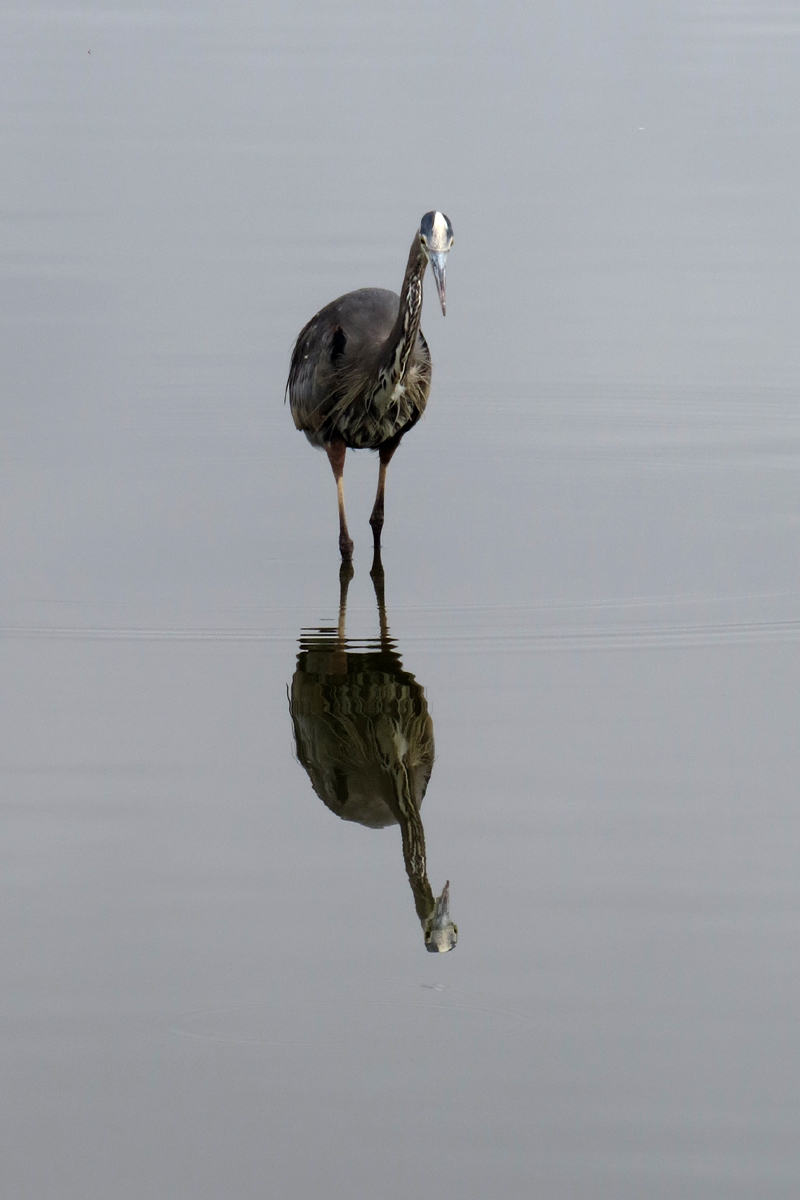 A Great Egret and a Great Blue Heron were looking all artsy with their reflections.