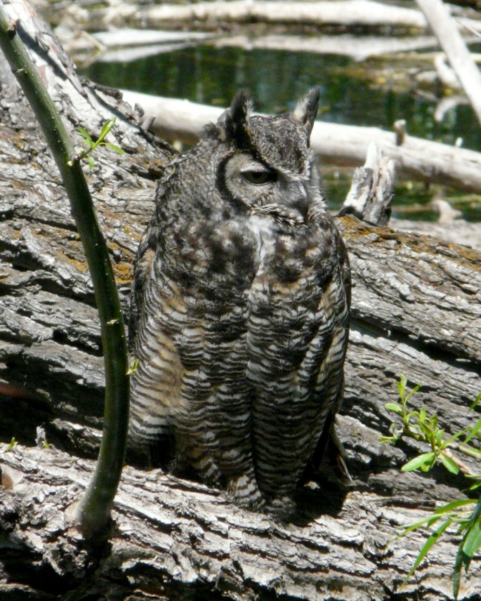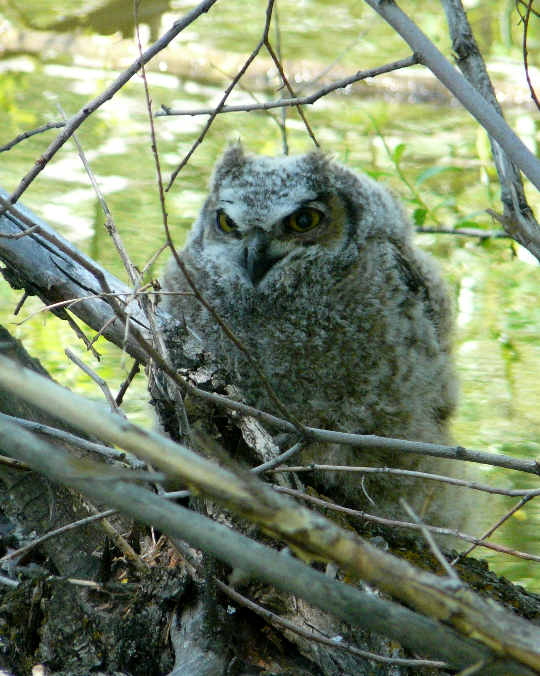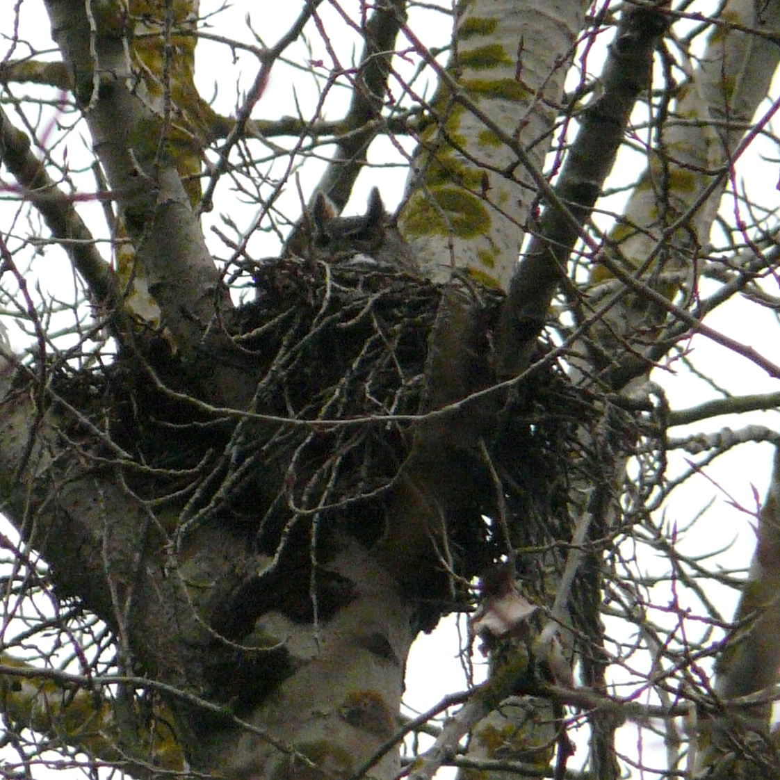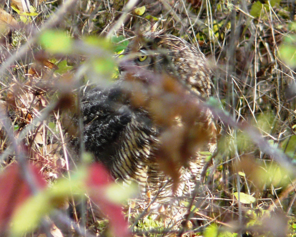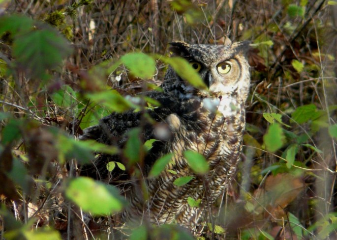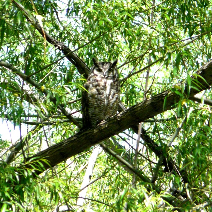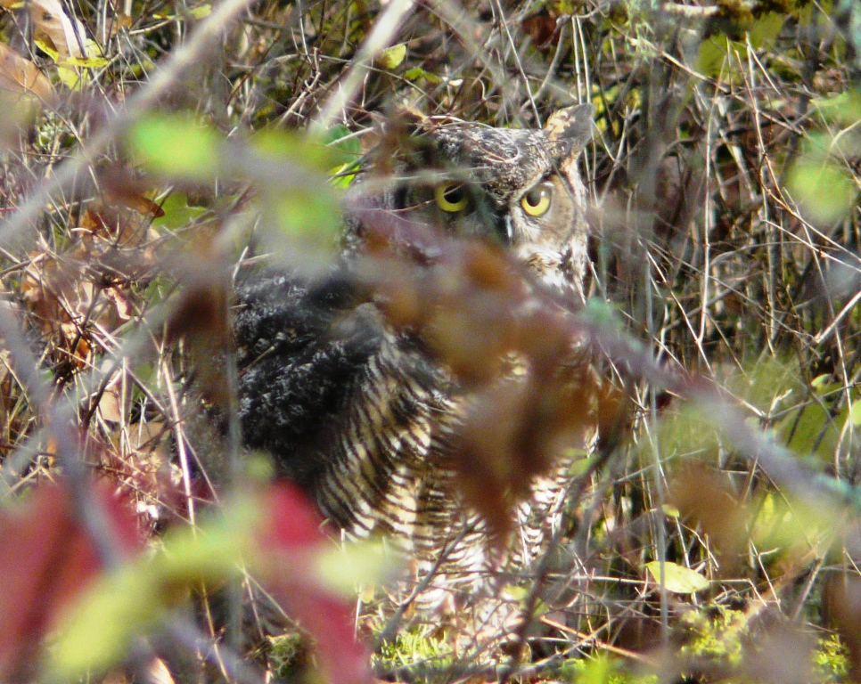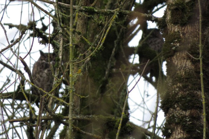 This pair of Great Horned Owls was hanging out along the trail to the Rail Trail boardwalk, once again proving that my camera would much rather focus on branches than on birds.