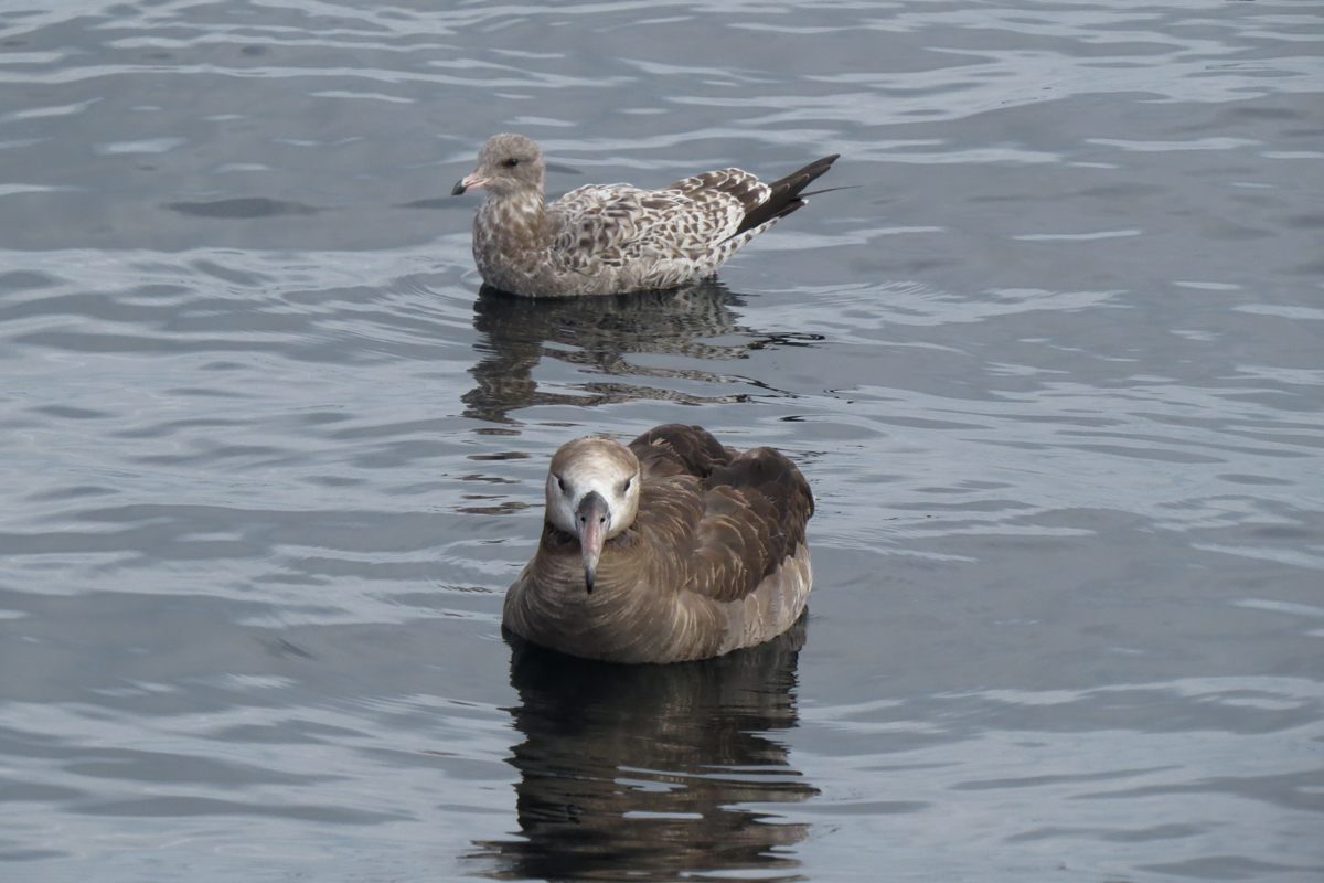 Laysan Albatross with its smokey eye, and a Northern Fulmar in the background