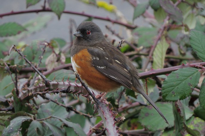 Despite morning temperatures near freezing, signs of spring are appearing at Fernhill Wetlands. This Black Phoebe was posing with some colorful buds.
