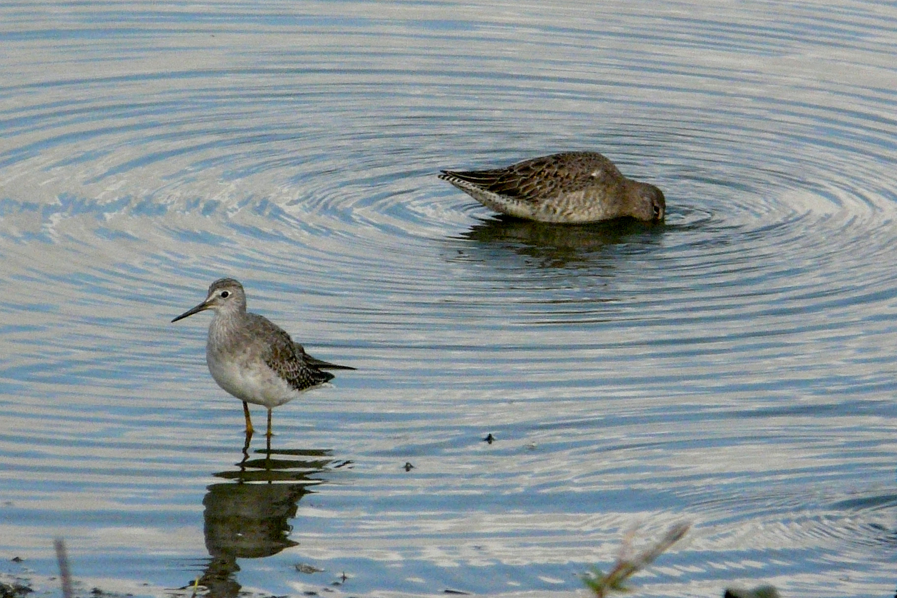 Occasionally, the Greater and Lesser Yellowlegs will pose together for a nice comparison.