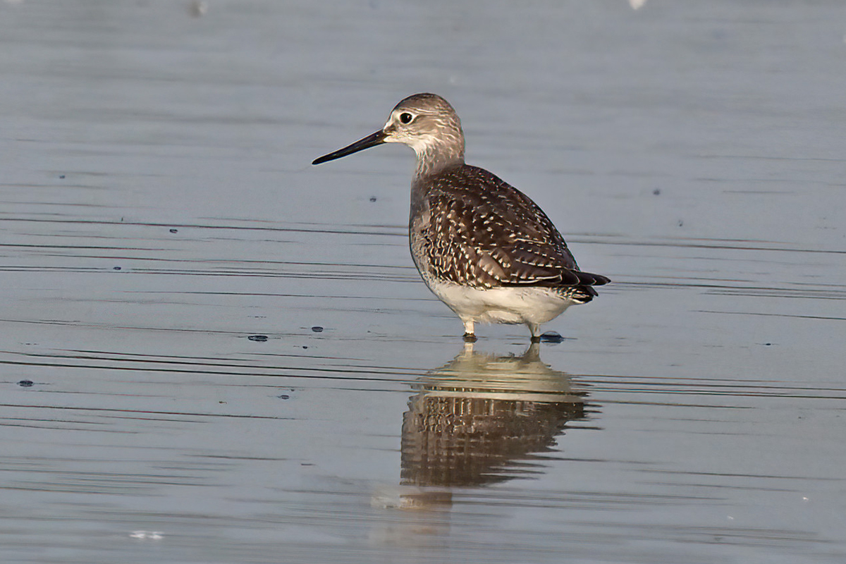 Typically seen wading, Greater Yellowlegs will occasionally swim in groups to catch small fish.