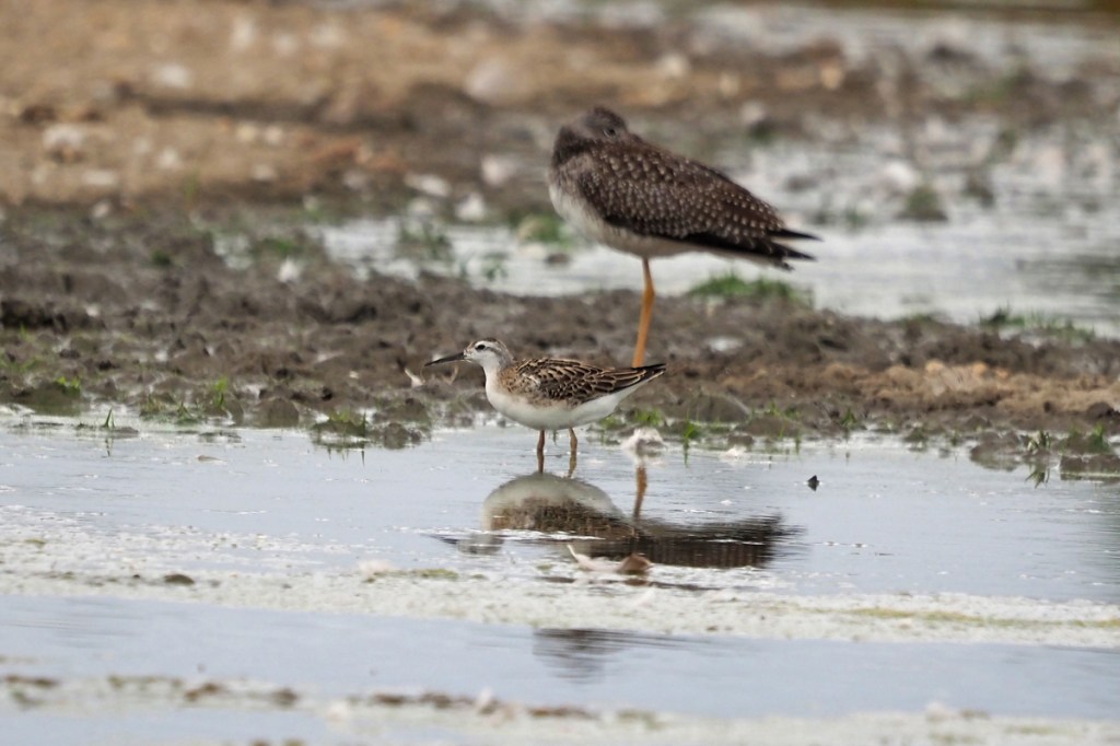 The main lake at Fernhill Wetlands has receded enough to create some nice mudflats, here being enjoyed by a Pectoral Sandpiper.