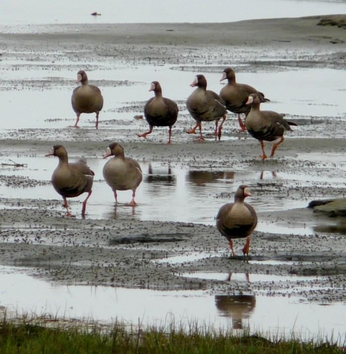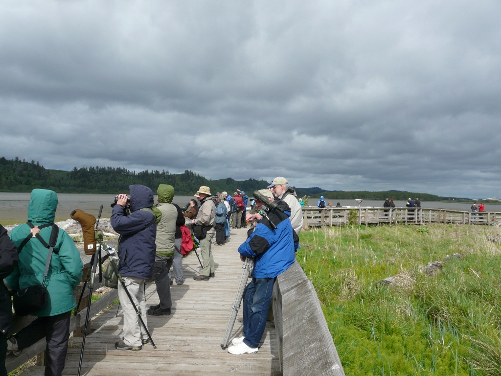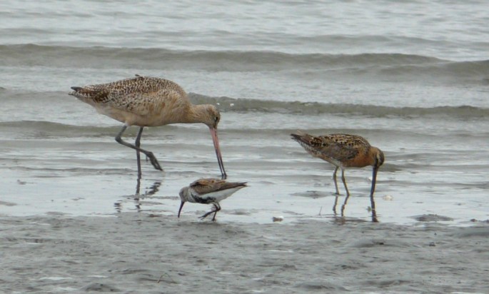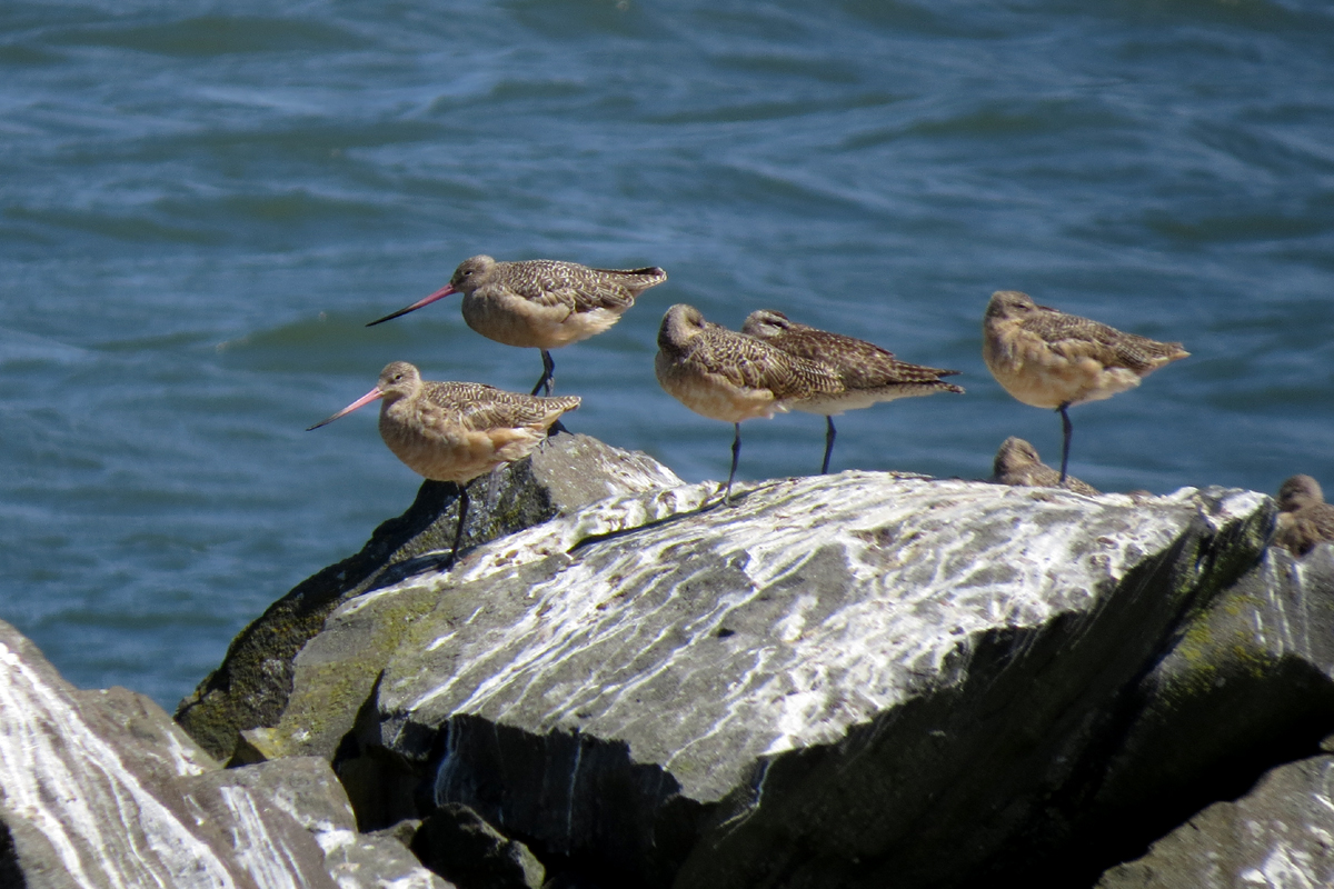 Several hundred Marbled Godwits spent a couple of weeks at the beach in Fort Stevens State Park.