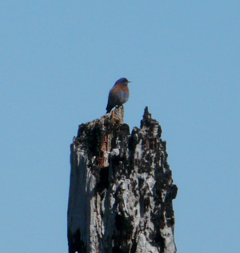 The top of the rim is more tundra-like, with a few trees and short grasses. Mountain Bluebirds and Western Meadowlarks are common in this area.