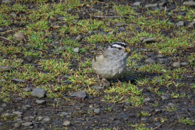 I thought the weedy patches along the trail would host more sparrows, but a few Song and Golden-crowned were all I could find.