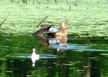 Most of the migrant shorebirds have moved on, but this wayward American Avocet was hanging out with the local waterfowl.
