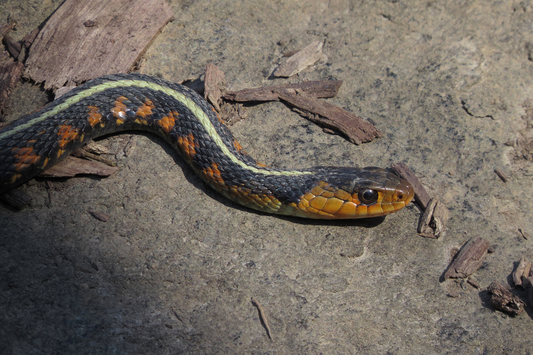 Now that the rains have begun, the Pacific Treefrogs have become more vocal and more visible. This youngster was sitting in the middle of a leaf on a cottonwood sapling. I missed most of the spring herp activity this year due to the demands of a certain puppy, so it has been great to see a few herps this fall.