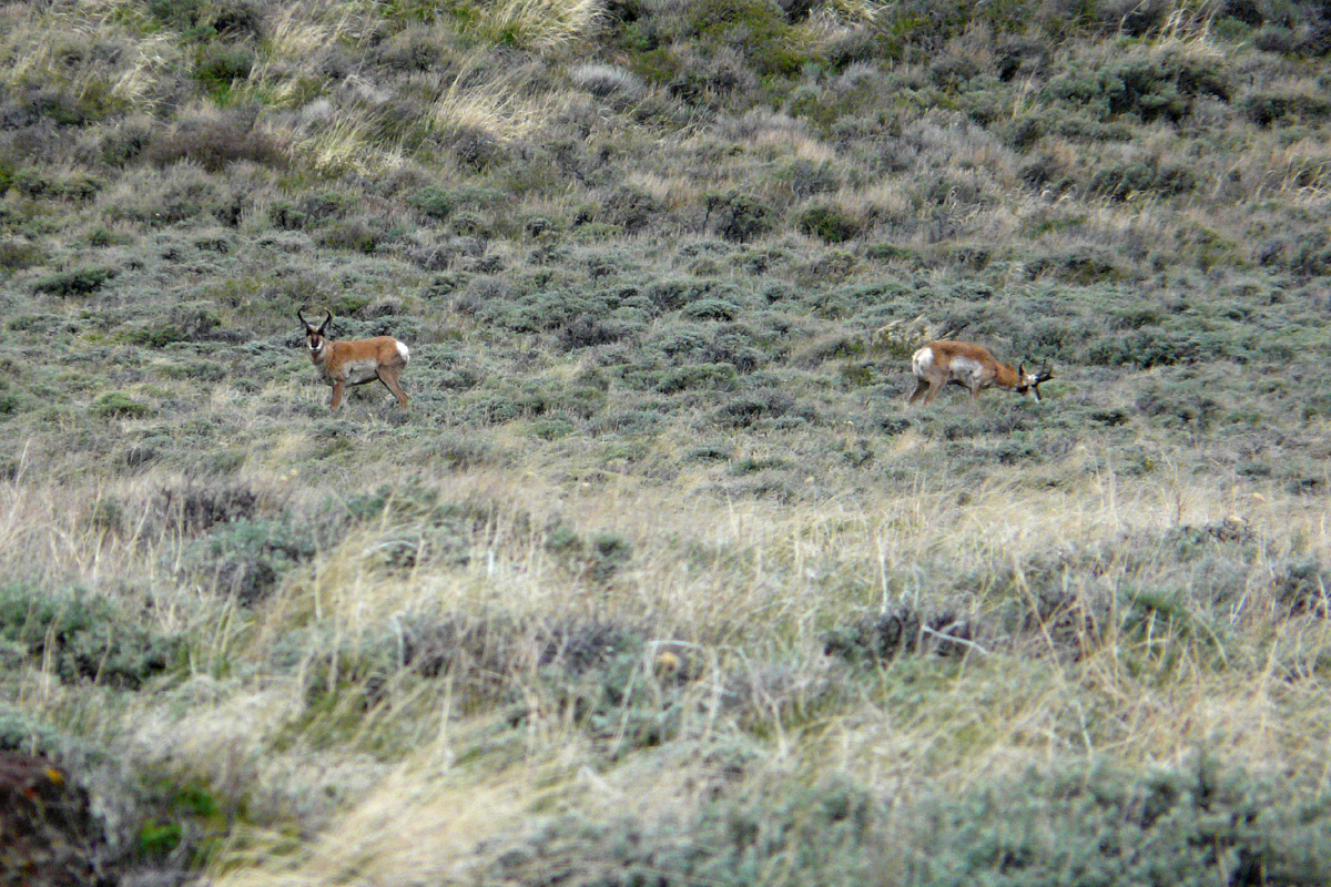 Despite the cold, he has already started to shed his winter coat. If you look closely, you can see just a bit of a yellow tag in his left ear. This identifies this animal as part of a study tracking Pronghorn migration between Hart Mountain and Sheldon NWR in Nevada.