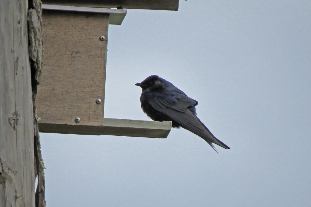This Purple Martin is from the colony at Fernhill Wetlands. The recently installed nesting boxes there have been a great success.