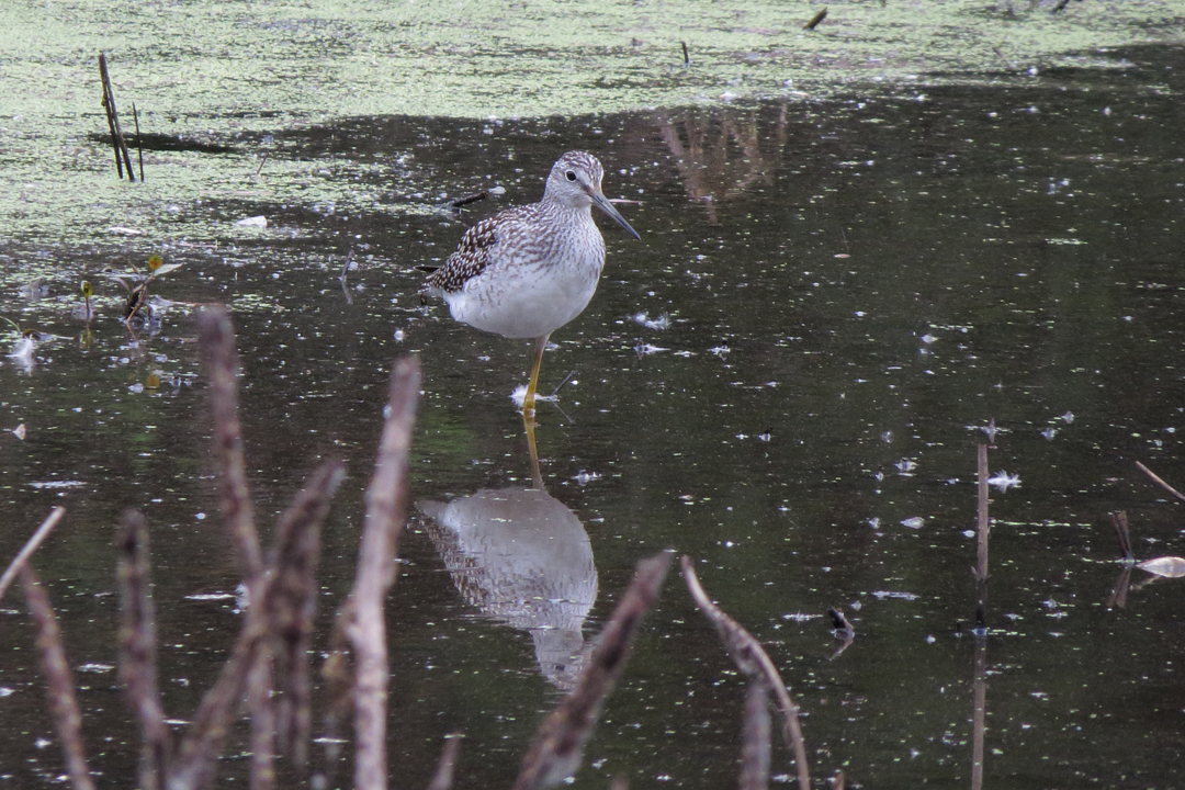 Shorebird migration is starting to pick up. Unfortunately, there is very little mudflat habitat in the Portland area right now. This Greater Yellowlegs was one of several sharing the slough with the Green Herons.