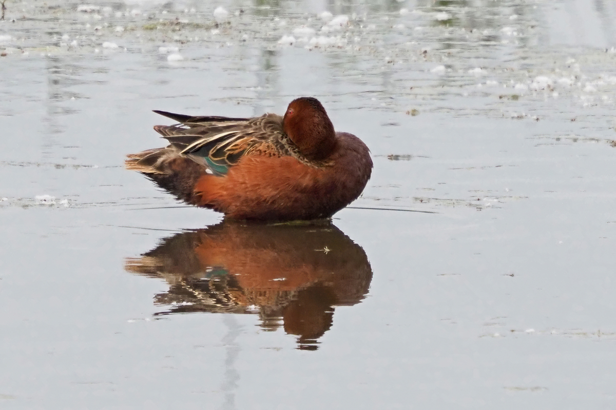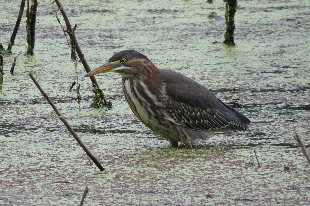 Smith and Bybee Wetlands is thick with Green Herons right now. There were at least a dozen in this little slough.