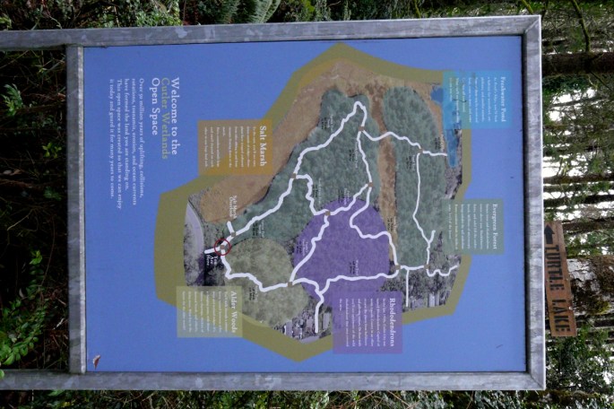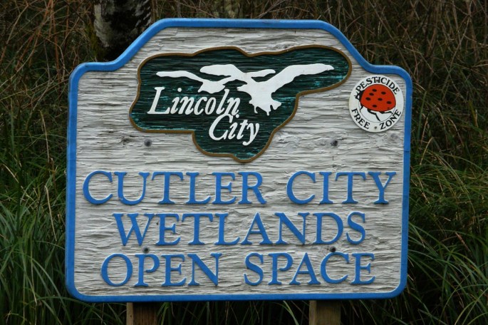 Cutler City Wetlands is a nice patch of woods worthy of exploration, especially during migration. From US 101, turn west onto SW 63rd Street. About one block from the highway, there is a small parking area on the right side of the road, just across from this sign.
