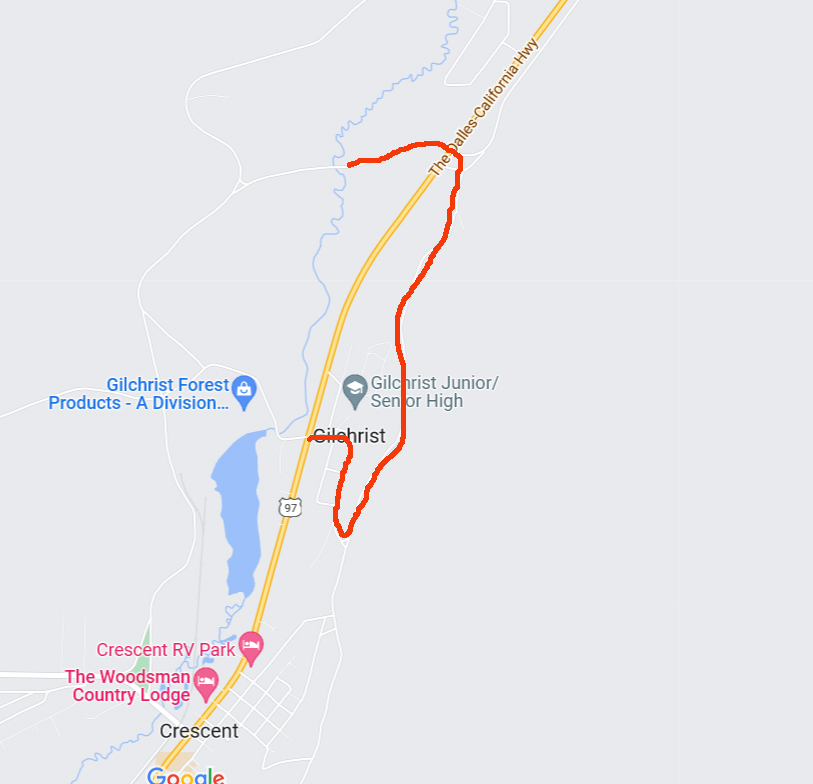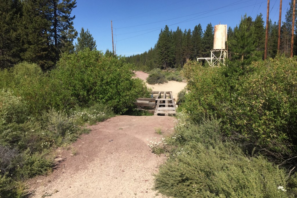 From US 97 in Gilchrist, turn east onto Mountain View Drive (at the liquor store). Turn right onto Hillcrest Street and follow it to its end at a gravel road. Turn left onto the gravel road (Gilchrist Haul Road on some maps, but there are no signs) and follow it north for about 1.4 miles, where it curves left to go under the highway. Follow the road through the forest for less than half a mile. When the gravel turns from gray to red, park you car and walk in the rest of the way.